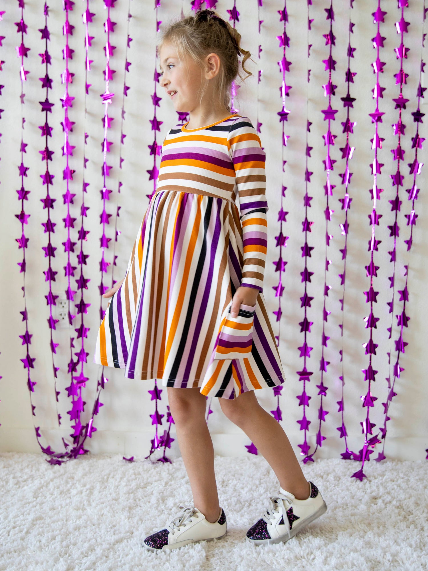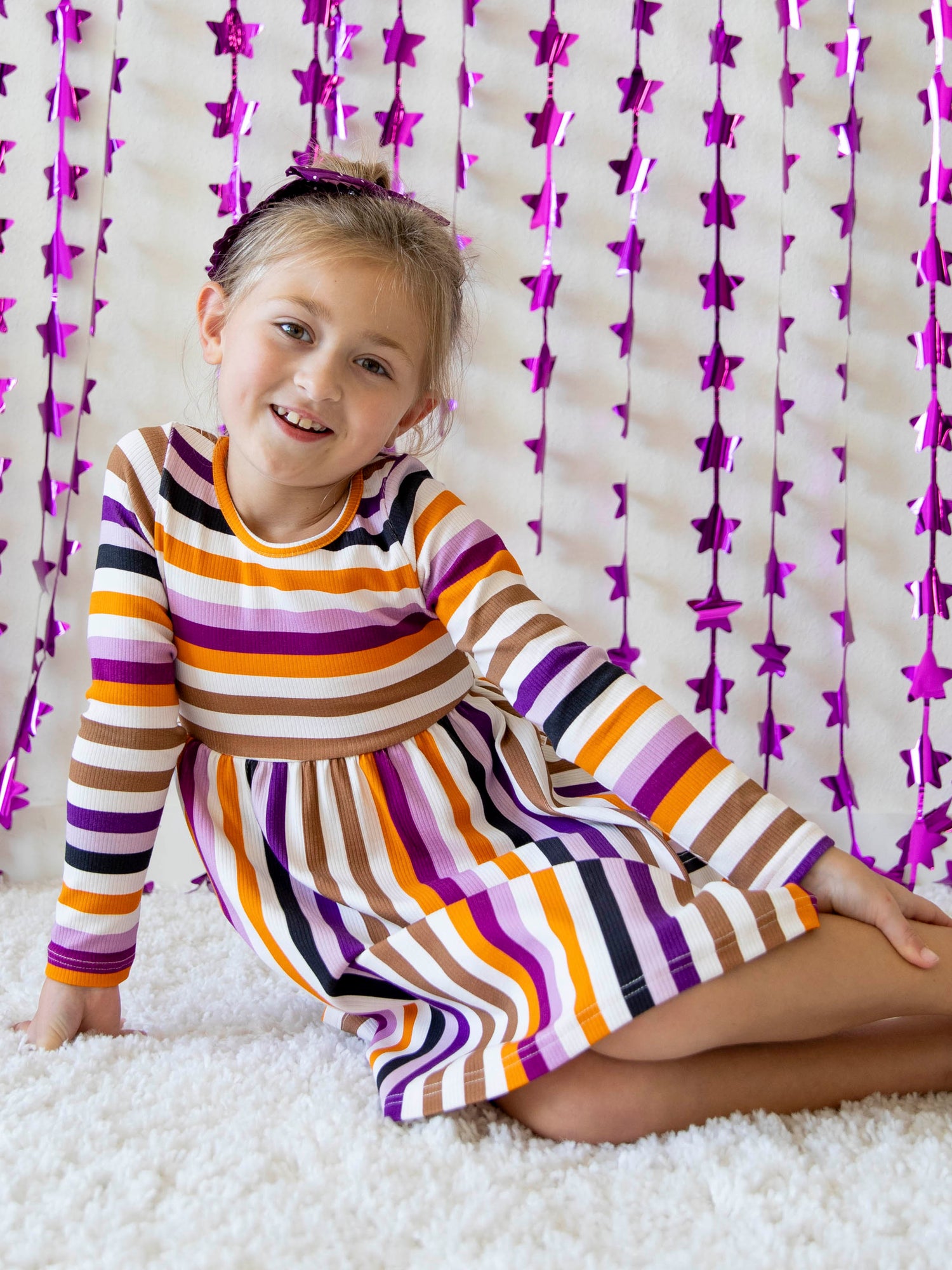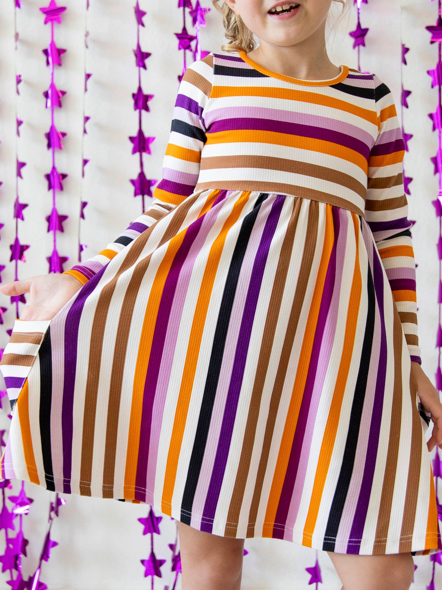 Fitted Ribbed Dress - Fall Stripe