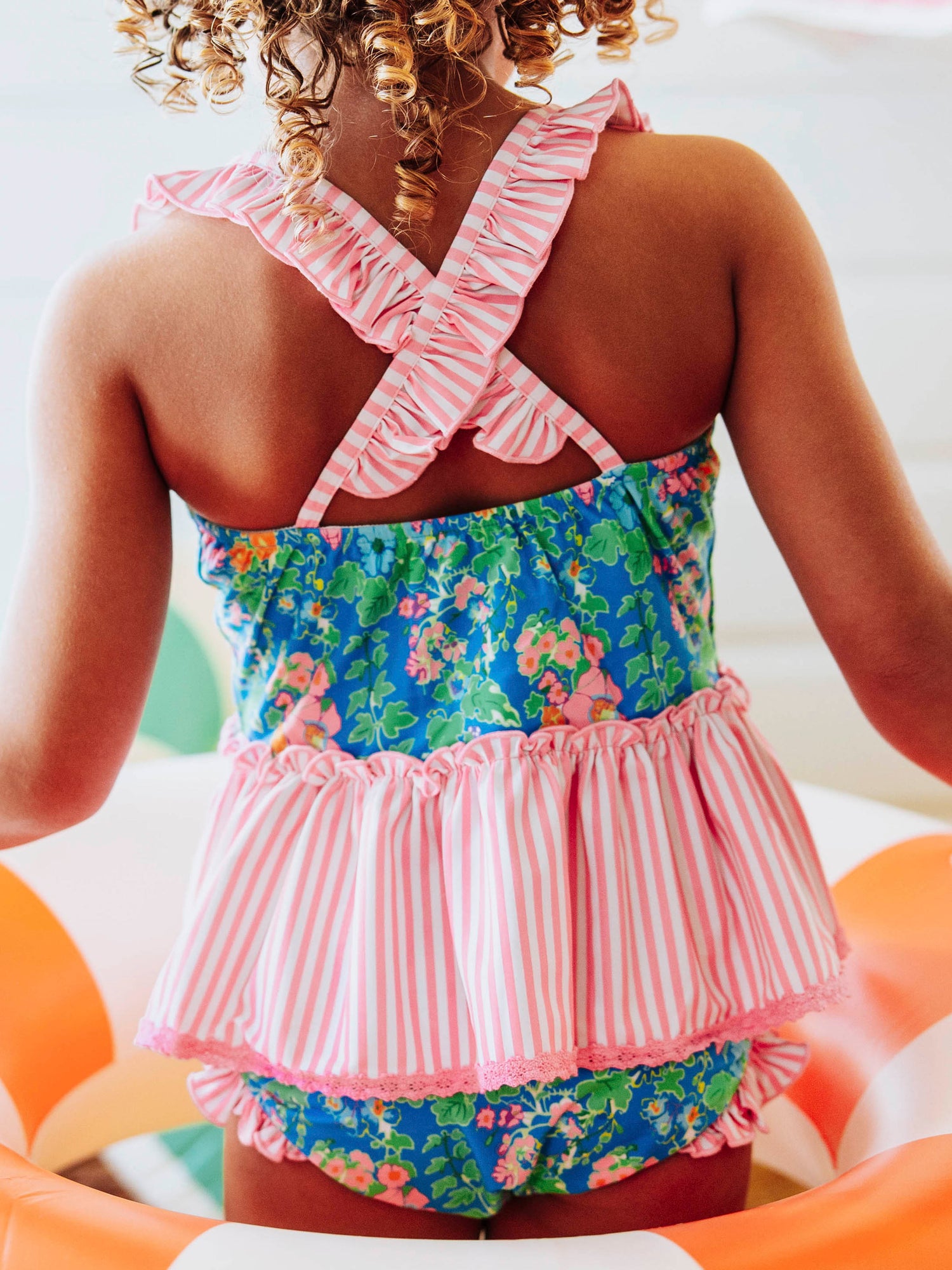 - Ruffled criss cross straps