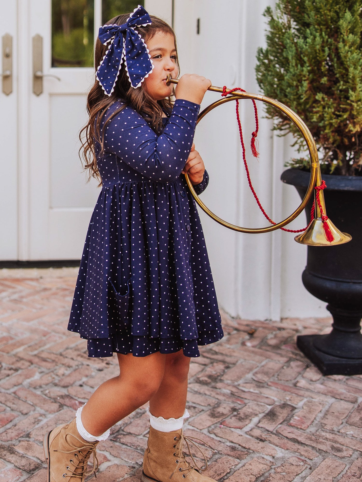Prim Dress - Navy Dotty
