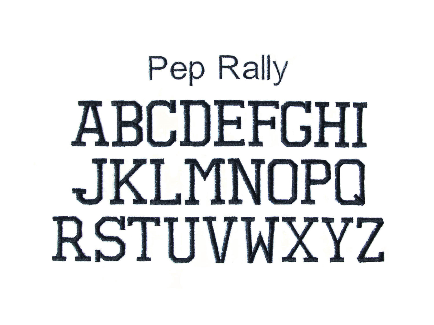 The size of embroidered designs varies depending on the number and width of the characters entered, as well as the size of the product. As such, the below examples are for letter placement only as we manually adjust each custom order to ensure you receive the best finished product possible.