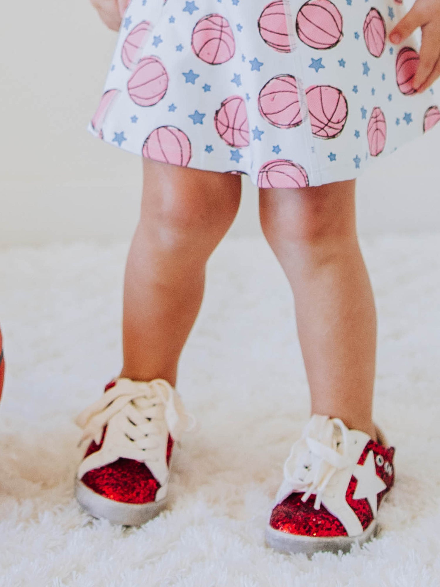 - Red glitter on toes and sides